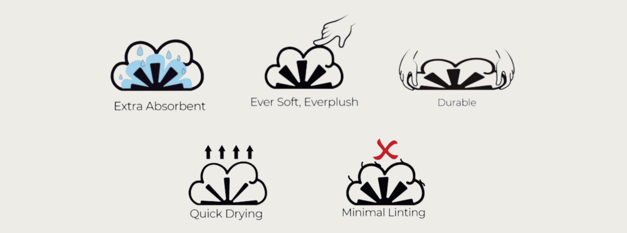 Loops of cotton as soft as a cloud, with hidden microfiber loops for extra strength and durability. We developed Everplush Technology to improve the quality and performance of everyday quick dry bath towels. With Everplush, you can fall in love with drying off again.